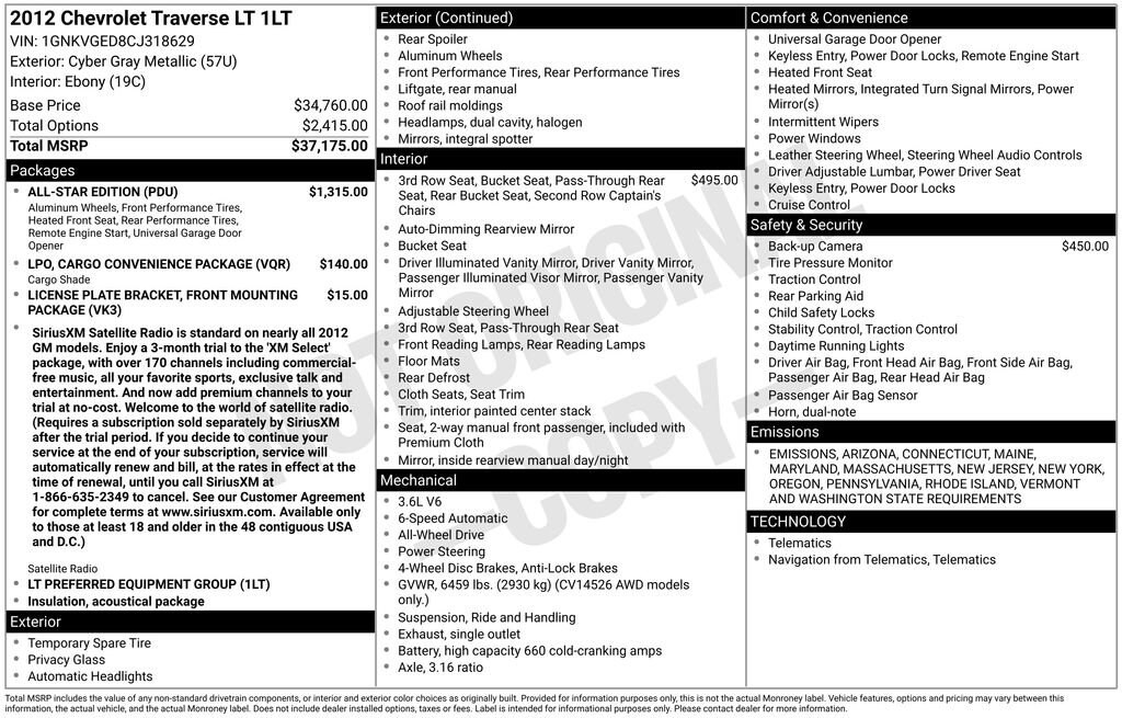 Used 2012 ChevroletTraverse 1LT