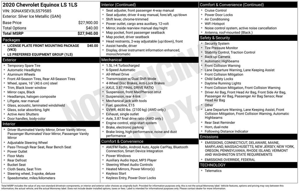 Used 2020 ChevroletEquinox LS