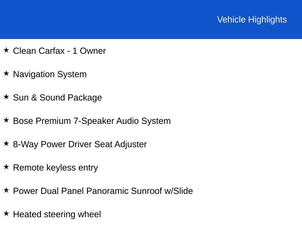 Clean CARFAX - CARFAX One-Owner - CarBravo Certified - Sun & Sound Package - Panoramic Sunroof - Bose Premium Sound System - Leather Seats - Heated & Ventilated Front Seats - Heated Steering Wheel - Navigation System - Apple Carplay/Android Auto - Surround View Backup Camera - Remote Keyless Entry - 17 Aluminum Wheels - Certification Program Details: Car Bravo Certified Vehicles pass a 126 point inspection performed by a GM Dealer, Herb Connolly Chevrolet. This car comes with a factory 12 month - 12,000 mile bumper to bumper warranty with roadside assistance and courtesy transportation. Vehicle history report and 10 day or 500 mile vehicle exchange program available. Not all vehicles will qualify. Herb Connolly Motors is the home of used car LIVE MARKET PRICING. LIVE MARKET PRICING gives our customers the piece of mind that we have already done the shopping for you and priced our vehicle aggressively in today's internet information marketplace while adjusting accordingly for - Supply - Equipment - Condition and Mileage. Remember at Herb Connolly Motors - WE DONT PLAY PRICING GAMES. See dealer for details, some Car Bravo Certified Vehicles will require financing with GMF for special rates or rebates via GMF.